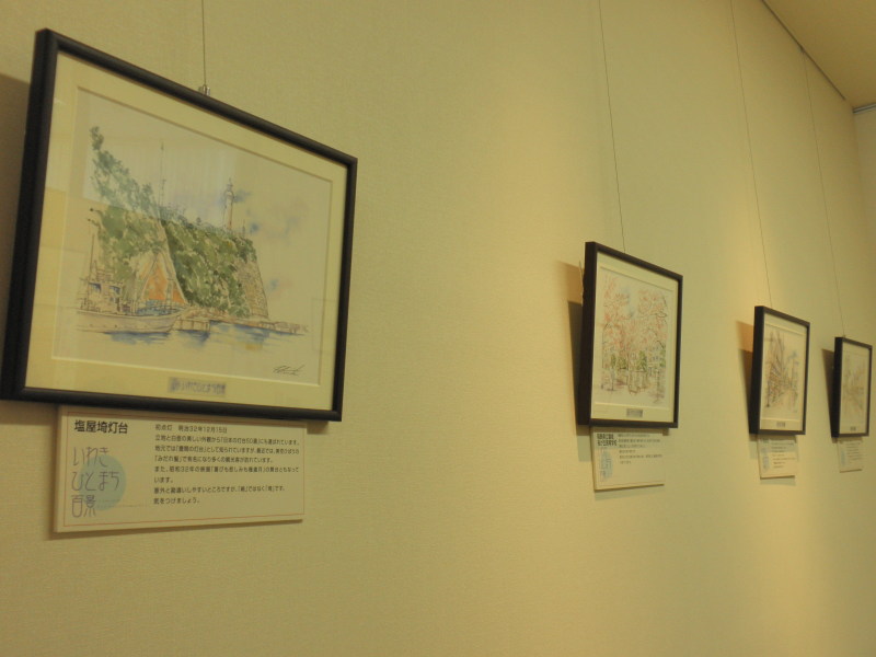 代表とする「塩屋埼灯台」をはじめ、最近の作品「浜風商店街」など10数点の作品と、