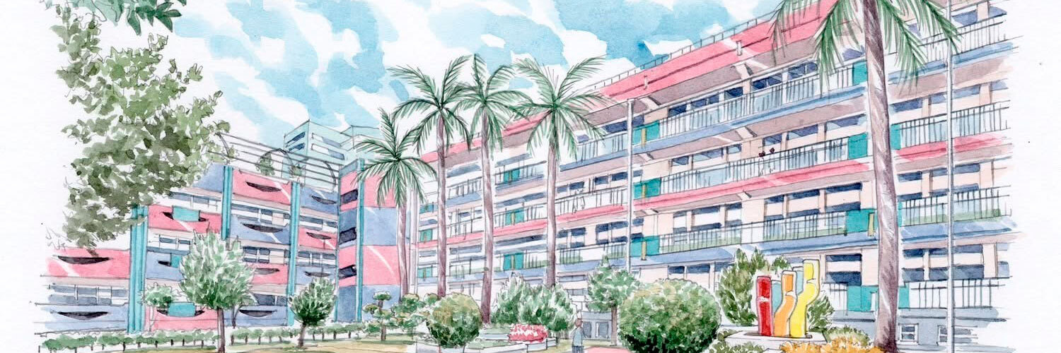 『いわきひとまち百景』のイラストがご縁となり、上野氏が描いた「高雄日本人学校様」のイラスト原画の制作をいたしました。